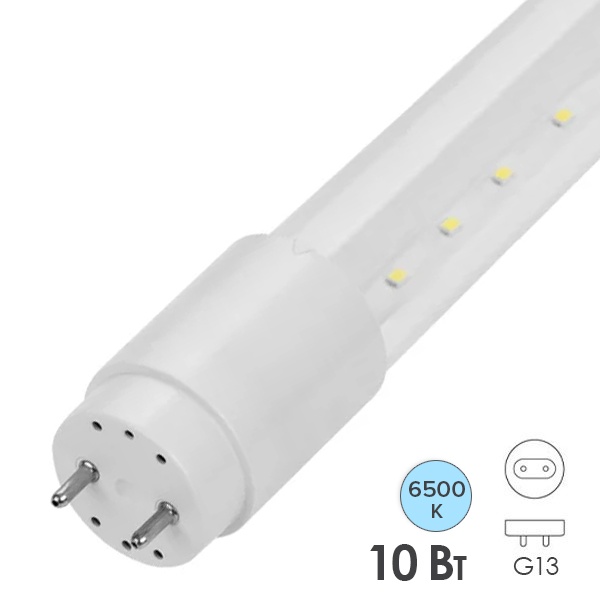 Лампа светодиодная линейная NLL-G-T8-10-230-6.5K-G13-CL-R 10W 6500K 1100Lm прозрачная 604x26mm 95788