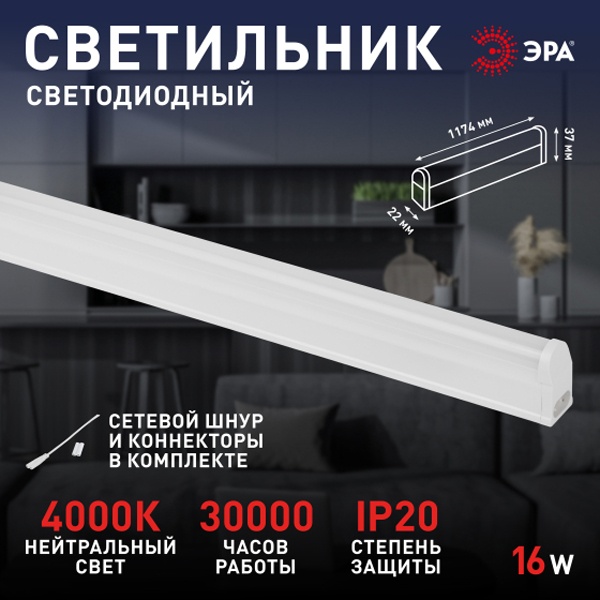Линейный светодиодный светильник LLED-01 мощностью 16 Вт, напряжением 230 В.