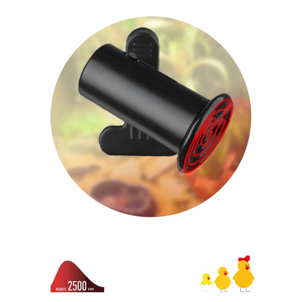 Прочная прищепка позволяет легко и надёжно закрепить светильник в любом месте обитания животных, а кнопочный выключатель на проводе обеспечивает удобное управление: включение и выключение всегда под рукой.
