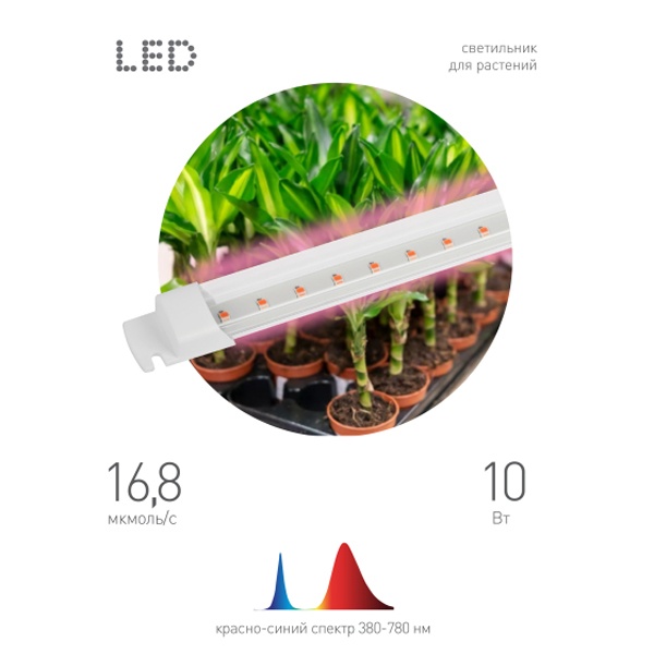 Тонкий корпус светильника длиной 530 мм легко монтируется на различные поверхности и практически незаметен в помещении. Шнур с вилкой длиной 0,5 м обеспечивает удобство подключения. Светильники идеально подходят для домашних теплиц, так как их размеры соответствуют стандартным габаритам большинства моделей.