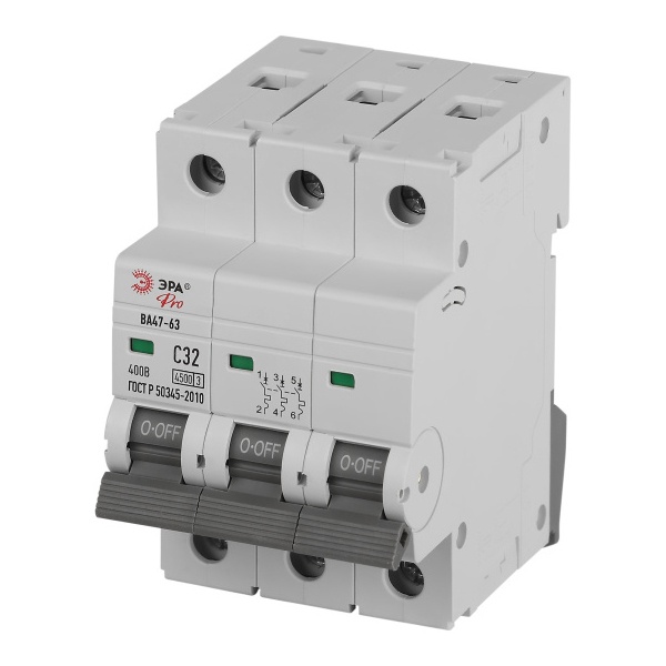 Автоматический выключатель ЭРА PRO VA63-3P32C4.5 ВА47-63 3P 32А кривая C 4,5кА (автомат электрический) Б0059440