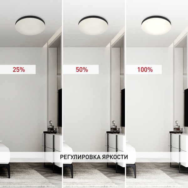 Матовый рассеиватель обеспечивает мягкое и равномерное распределение светового потока без резких теней, бликов и зрительного дискомфорта. Регулируемая цветовая температура в диапазоне от 3000K до 6500K позволяет подобрать оптимальный режим освещения: тёплый свет - для отдыха и уюта, нейтральный - для повседневных задач, холодный - для концентрации и работы.