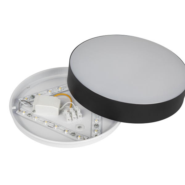 Характеристики: Мощность: 20 Вт Напряжение питания: 175-240 В Максимальный световой поток: 1250 Лм Цветовая температура: 4000 К Индекс цветопередачи: >80 Материал корпуса: металл Материал рассеивателя: пластик Степень защиты: IP20 Диаметр: 210 мм Высота: 55 мм Срок службы: 30 000 ч Цвет: черный