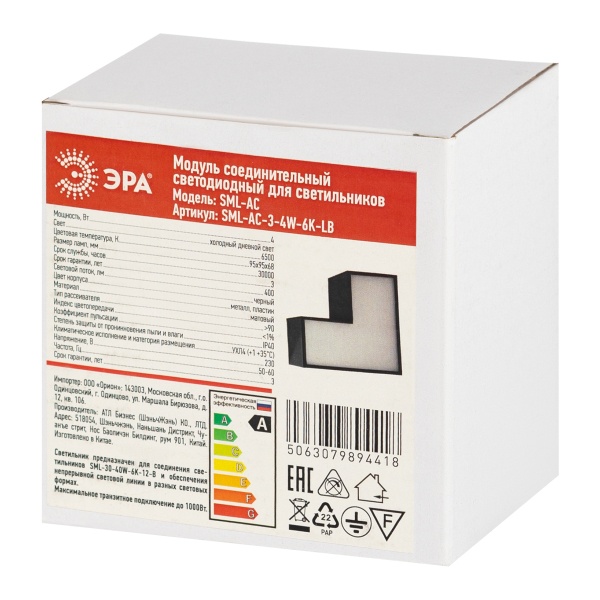 • Модуль соединительный ЭРА SML-AC-3-4W-6K-LB 4W 6500K 400Lm для светильников SML-30 черный