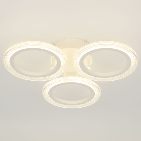 Светодиодная потолочная люстра ЭРА Модерн Ring 39Вт нейтральный белый свет Б0069742 Серия потолочных светодиодных светильников в виде элегантных белых колец - это современное и универсальное решение для любых интерьеров: от минималистичных до классических. Мощность светильников варьируется от 39 до 90 Вт, что делает их подходящими как для компактных комнат, так и для просторных залов. Модели мощностью 59 Вт и 90 Вт оснащены регулируемой цветовой температурой (3000–6500K), позволяя создавать тёплую, нейтральную или холодную подсветку в зависимости от настроения и потребностей. Дополнительно, светильники комплектуются пультом дистанционного управления, который обеспечивает лёгкое и удобное регулирование яркости и цвета света, а также возможность программирования режимов освещения для максимального комфорта.