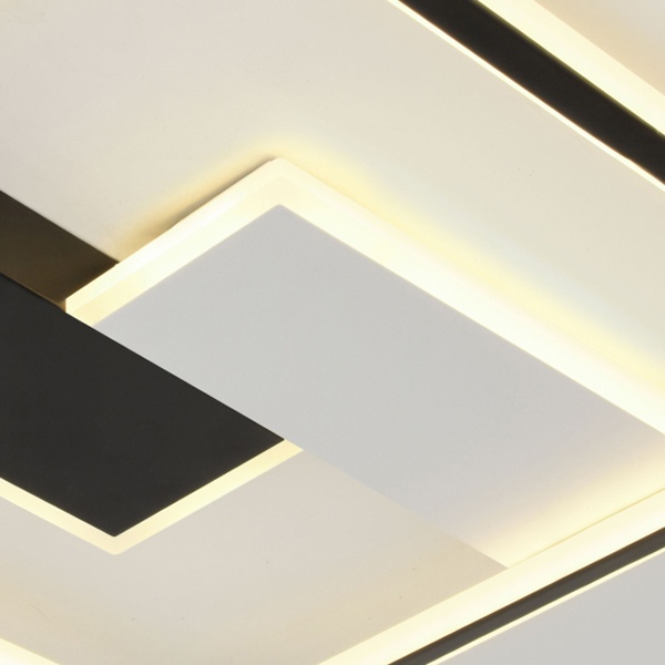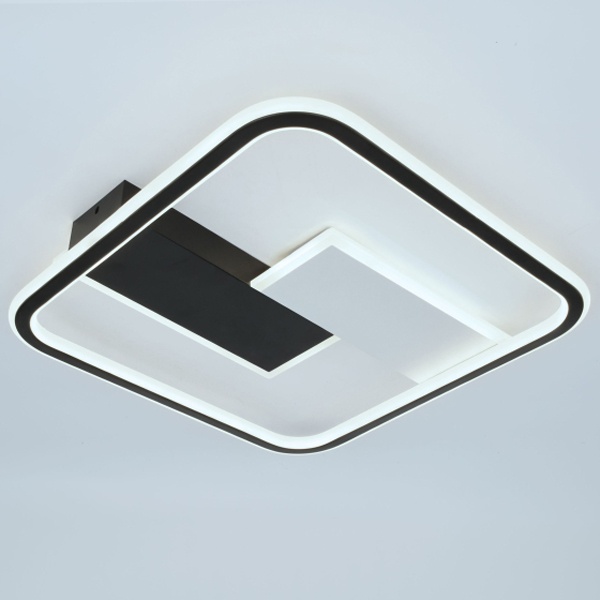 Светодиодная потолочная люстра ЭРА Модерн Henri 104Вт с регулируемой температурой цвета и дистанционным управлением Б0069747 Современный потолочный светодиодный светильник квадратной формы с элегантным чёрно-белым дизайном станет стильным акцентом любого интерьера. Оснащён удобным пультом дистанционного управления, который позволяет плавно регулировать яркость и менять цветовую температуру в диапазоне 3000–6500?K - от тёплого мягкого света до холодного дневного. Мощность 104?Вт обеспечивает равномерное, яркое и комфортное освещение, идеально подходящее для гостиных, кухонь, офисов и рабочих зон. Лёгкий монтаж, энергосбережение и долговечность делают этот светильник практичным и современным решением для дома и офиса.
