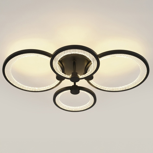 Светодиодная потолочная люстра ЭРА Модерн Odry 78Вт с регулируемой температурой цвета и дистанционным управлением Б0069751 Серия потолочных светодиодных светильников-колец в элегантном чёрном исполнении сочетает стильный дизайн с высокими эксплуатационными характеристиками - идеальное решение для создания уютного и функционального освещения в любом помещении. Комплект включает удобный пульт дистанционного управления, позволяющий регулировать яркость и цветовую температуру в диапазоне от 3000 до 6500?К, создавая комфортную атмосферу под любые задачи - от мягкого тёплого света до яркого дневного. Мощность моделей варьируется от 46 до 117?Вт, что даёт возможность подобрать оптимальный вариант как для небольших комнат, так и для просторных залов. Дополнительно светильники отличаются энергоэффективностью, долговечностью светодиодов и простотой монтажа, обеспечивая современное освещение без лишних усилий.
