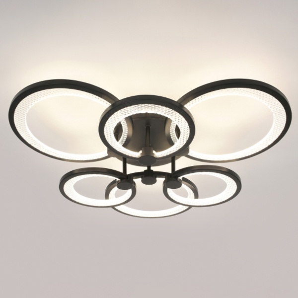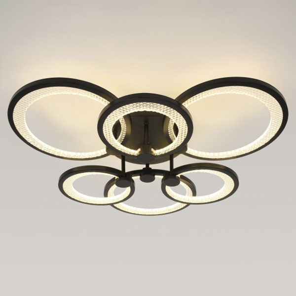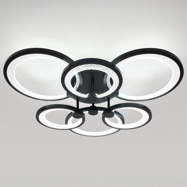 Светодиодная потолочная люстра ЭРА Модерн Odry 117Вт с регулируемой температурой цвета и дистанционным управлением Б0069752 Серия потолочных светодиодных светильников-колец в элегантном чёрном исполнении сочетает стильный дизайн с высокими эксплуатационными характеристиками - идеальное решение для создания уютного и функционального освещения в любом помещении. Комплект включает удобный пульт дистанционного управления, позволяющий регулировать яркость и цветовую температуру в диапазоне от 3000 до 6500?К, создавая комфортную атмосферу под любые задачи - от мягкого тёплого света до яркого дневного. Мощность моделей варьируется от 46 до 117?Вт, что даёт возможность подобрать оптимальный вариант как для небольших комнат, так и для просторных залов. Дополнительно светильники отличаются энергоэффективностью, долговечностью светодиодов и простотой монтажа, обеспечивая современное освещение без лишних усилий.