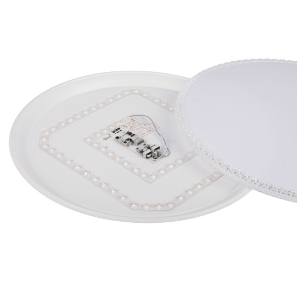 Классическая круглая форма плафона гармонично сочетается с различными стилями интерьера - от минимализма до современного классического оформления. Матовый рассеиватель обеспечивает мягкое и равномерное распределение светового потока, устраняя резкие тени и предотвращая появление бликов, что делает освещение комфортным для глаз даже при длительном пребывании в помещении.