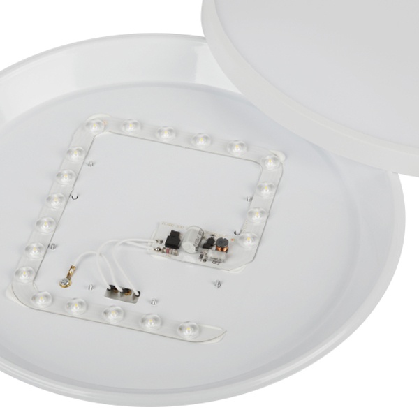 Цветовая температура 5000 К формирует нейтрально-холодный белый свет, способствующий концентрации и комфортной работе. Рекомендуемая площадь освещения — до 9 м2 . Встроенные светодиоды отличаются энергоэффективностью, стабильной работой без мерцания и длительным сроком службы — до 30 000 часов.