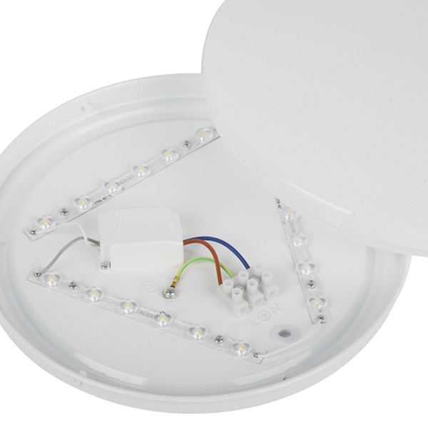 Классическая круглая форма плафона гармонично сочетается с различными стилями интерьера - от минимализма до современного классического оформления. Матовый рассеиватель обеспечивает мягкое и равномерное распределение светового потока, устраняя резкие тени и предотвращая появление бликов, что делает освещение комфортным для глаз даже при длительном пребывании в помещении.