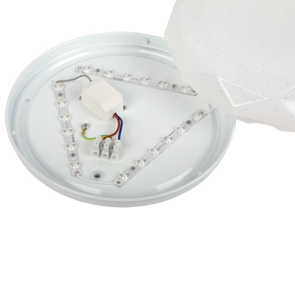 LED светильник тарелка накладного потолочного монтажа 24 Вт холодный дневной свет Б0069788 Светодиодный светильник ЭРА SPB-6 Slim Sparkle — современный вариант для организации общего освещения в жилых и коммерческих помещениях. Благодаря компактным размерам 230x60 мм модель отлично подходит для комнат с невысокими потолками. Степень защиты IP20 позволяет использовать светильник в сухих внутренних пространствах, а оригинальная форма плафона гармонично сочетается с различными стилями интерьера.Мощность устройства составляет 24 Вт, при этом световой поток достигает 1560 лм, обеспечивая достаточную яркость для повседневного освещения. Матовый рассеиватель способствует мягкому и равномерному распределению света без бликов и зрительного дискомфорта.Нейтральная цветовая температура 6500 К создаёт комфортную атмосферу как для работы, так и для отдыха. Светильник эффективно освещает площадь до 6 м2 . Встроенные светодиоды отличаются экономичным энергопотреблением, стабильной работой без мерцания и длительным сроком службы — до 30 000 часов.Модель проста в установке, не требует дополнительного обслуживания и подходит для использования в качестве основного или дополнительного источника света. ЭРА SPB-6 Slim Sparkle объединяет современный дизайн, надёжность и энергоэффективность, что делает его практичным выбором для квартир, офисов, торговых и подсобных помещений.