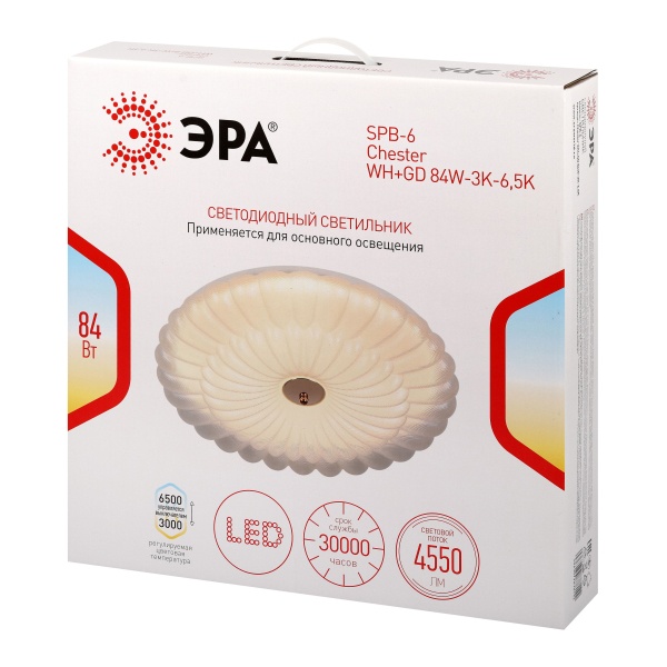 Круглый накладной LED светильник ЭРА SPB-6 Chester, мощностью 84 Вт с изменяемой температурой света, цвет белый золото Б0070192 Светодиодный светильник ЭРА SPB-6 - это современное и практичное решение для организации общего освещения в жилых и коммерческих помещениях. Благодаря компактным размерам модель отлично подходит для установки в комнатах с низкими потолками, не перегружая пространство и сохраняя ощущение легкости в интерьере. Степень защиты IP20 позволяет безопасно использовать светильник в сухих помещениях - гостиных, спальнях, коридорах, офисах, торговых залах и подсобных комнатах.