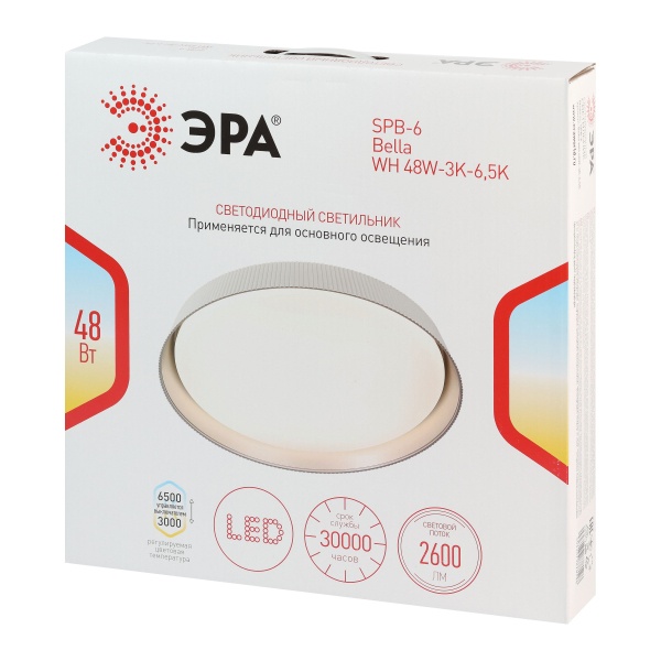 Мощность устройства составляет 48 Вт, при этом световой поток достигает 2600 лм, обеспечивая яркое и равномерное освещение пространства площадью до 12 м2 . Матовый рассеиватель мягко распределяет свет, устраняя резкие тени, блики и зрительный дискомфорт, что особенно важно для жилых комнат и рабочих зон.