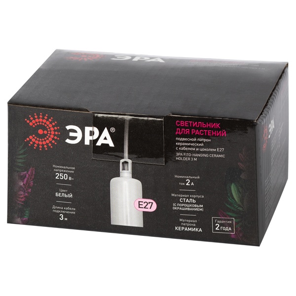 Электрический патрон Е27 с питающим шнуром 3м и выключателем белого цвета Б0071169 Светильник для растений ЭРА FITO-Hanging - это стильное и продуманное решение для создания комфортной среды роста ваших растений в домашних условиях. Он сочетает в себе надежность, функциональность и современный минималистичный дизайн, благодаря чему органично вписывается в любой интерьер - от классического до лофта.