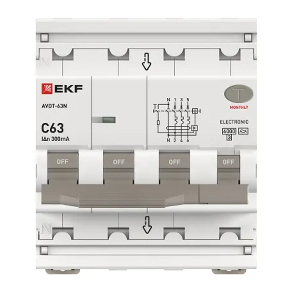 Автоматический выключатель дифференциального тока АВДТ-63N PROXIMA EKF представляет собой комбинированное устройство, объединяющее функции автоматического выключателя и УЗО (электромеханического или электронного типа). Благодаря такому решению прибор обеспечивает комплексную защиту электрической сети одновременно от:
