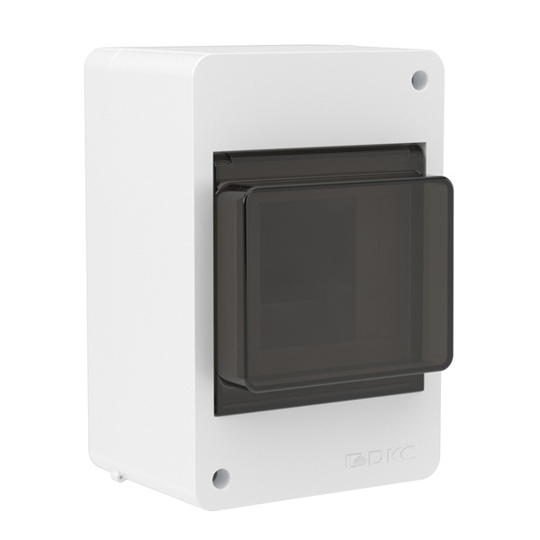 • Щиток настенный DKC FRAME 4 модуля с тонированной дверцей IP40 белый