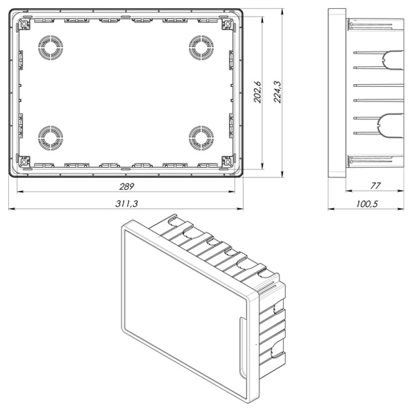 Благодаря симметричной конструкции корпуса, дверь щитка может открываться как влево, так и вправо, обеспечивая удобный доступ к оборудованию независимо от условий установки. Щиток FRAME выполнен из прочных и износостойких материалов, что гарантирует его долговечность и надежность в эксплуатации.