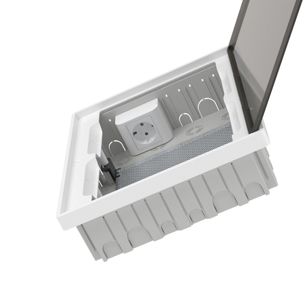 • Щиток встраиваемый для полых стен слаботочный DKC FRAME 24м тонированная дверца, плата, розетки IP40