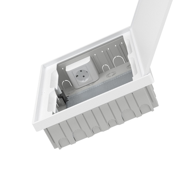 • Щиток встраиваемый для полых стен слаботочный DKC FRAME 24м белая дверца, плата, розетки IP40 белый