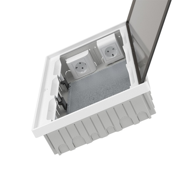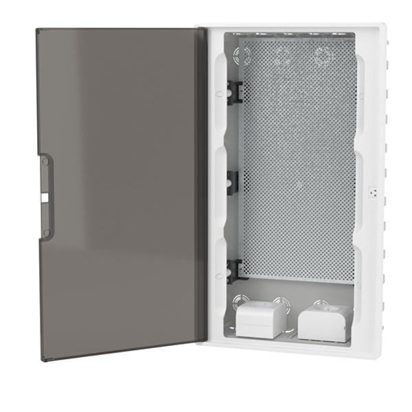 • Щиток встраиваемый для полых стен слаботочный DKC FRAME 36м тонированная дверца плата, розетки IP40