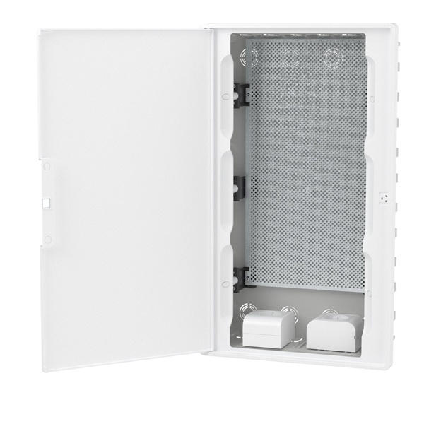 • Щиток встраиваемый для полых стен слаботочный DKC FRAME 36м белая дверца, плата, розетки IP40 белый