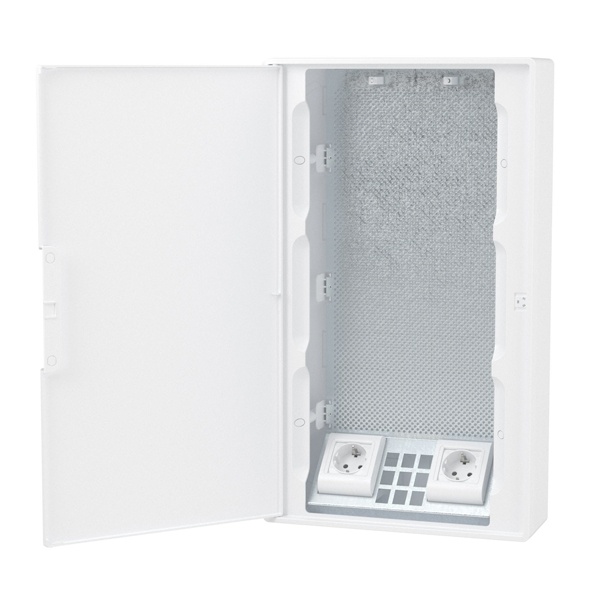 • Щиток настенный слаботочный DKC FRAME 36 модулей с белой дверцей плата, розетки IP40 белый