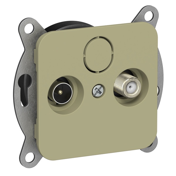 Встраиваемая проходная антенная TV+SAT розетка IEK FLITE с экраном, оливковый FI-AF23-P-K26