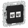 Двухместная информационная RJ45 STP розетка IEK FLITE шестой категории скрытой установки, черный FI-K21-2-K02