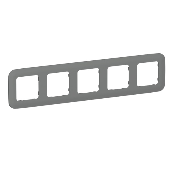 Пятипостовое декоративное обрамление из пластика с закруглёнными краями для электроустановочных механизмов ИЭК Flite, цвет мокрый асфальт FI-M52-31-20-K80