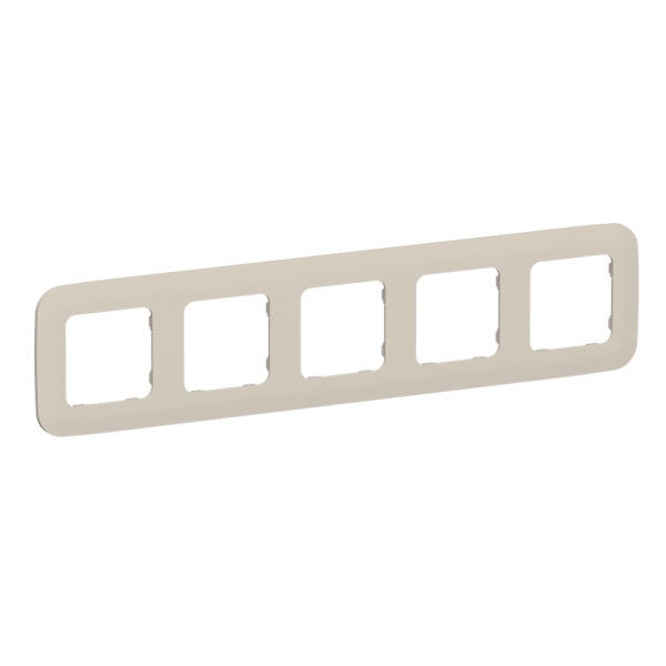 Пятипостовое декоративное обрамление из пластика с закруглёнными краями для электроустановочных механизмов ИЭК Flite, цвет льняной FI-M52-31-20-K88