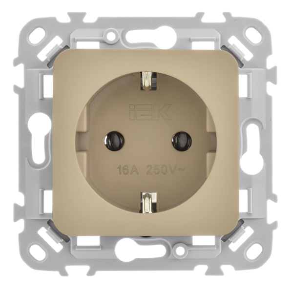 Электрическая розетка Schuko с защитным заземлением скрытого монтажа, IEK FLITE, самозажимные клеммы, хаки FI-R11-16-1-K59 Серия электроустановочных изделий FLITE от IEK - это элегантный баланс современного дизайна и тщательно продуманной функциональности. Мягкая палитра пастельных оттенков наполняет пространство ощущением уюта, лёгкости и гармонии, органично дополняя как лаконичные современные интерьеры, так и изысканные классические решения.
