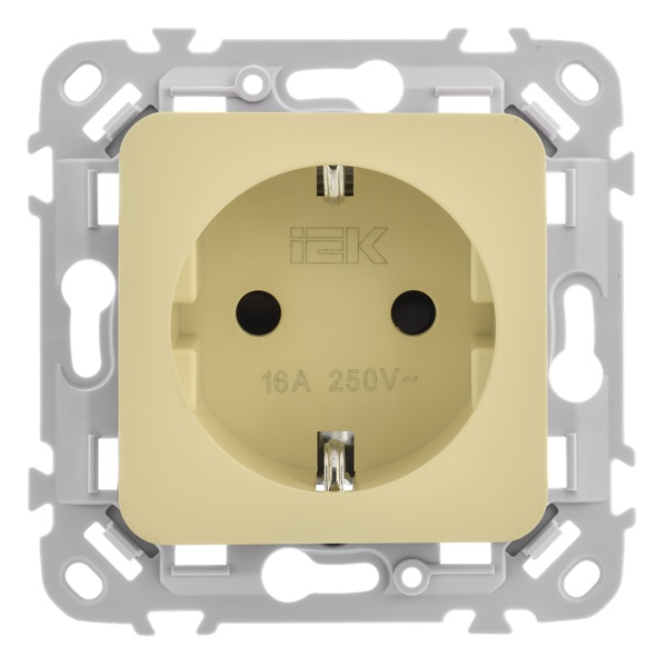 Электрическая розетка Schuko с защитным заземлением скрытого монтажа, IEK FLITE, самозажимные клеммы, навахо FI-R11-16-1-K87 Серия электроустановочных изделий FLITE от IEK - это элегантный баланс современного дизайна и тщательно продуманной функциональности. Мягкая палитра пастельных оттенков наполняет пространство ощущением уюта, лёгкости и гармонии, органично дополняя как лаконичные современные интерьеры, так и изысканные классические решения.