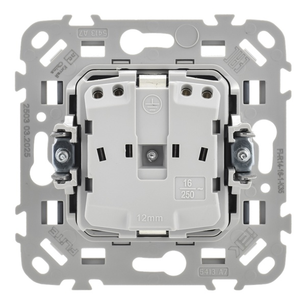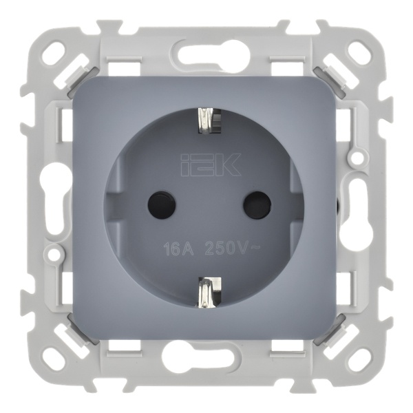 Электрическая розетка Schuko с защитным заземлением и шторками скрытого монтажа, IEK FLITE, самозажимные клеммы, маренго FI-R14-16-1-K35