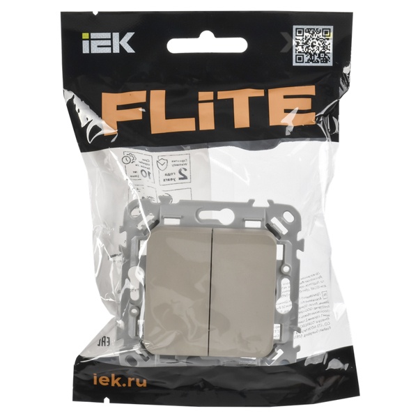 2-клавишный выключатель скрытой установки IEK FLITE льняной безвинтовые клеммы FI-V20-0-10-1-K88