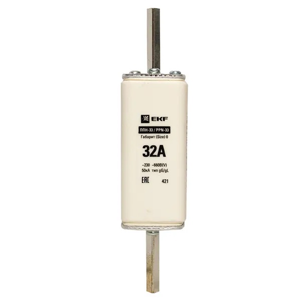 Плавкий предохранитель ножевого типа ППН-33, номинальный ток 32А, габарит 0 fus-33-0/160/32