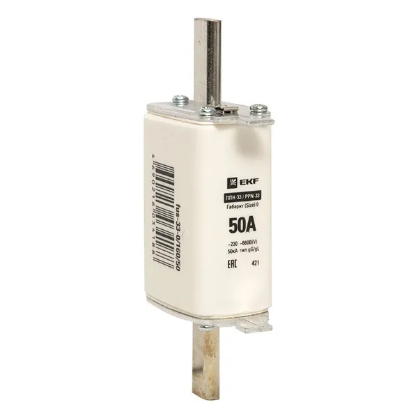 Плавкий предохранитель ножевого типа ППН-33, номинальный ток 50А, габарит 0 fus-33-0/160/50