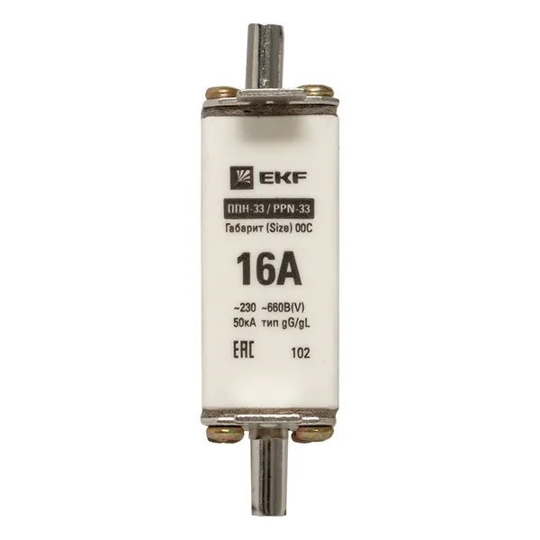 Плавкая вставка EKF ППН-33 100/ 16А габарит 00С fus-33/100/16