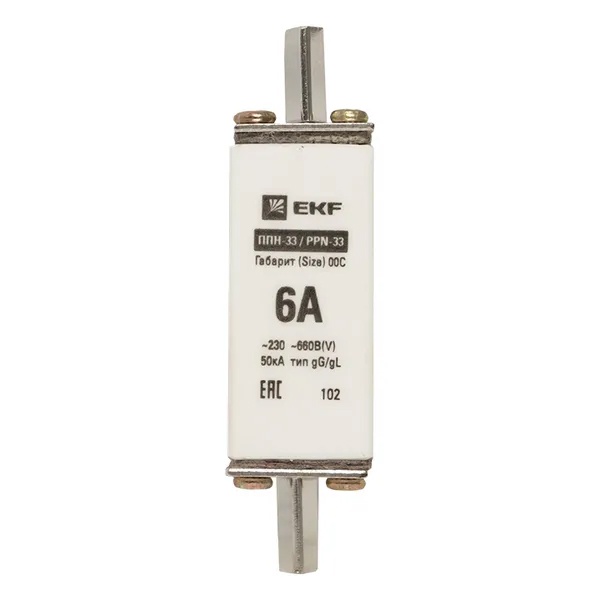 Плавкая вставка EKF ППН-33 100/ 6А габарит 00С fus-33/100/6