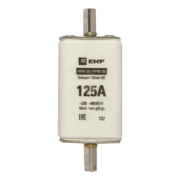 Плавкий предохранитель ножевого типа ППН-33, номинальный ток 125А, габарит 00 fus-33/160/125