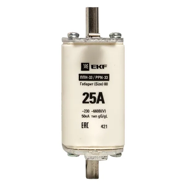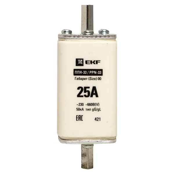 Плавкий предохранитель ножевого типа ППН-33, номинальный ток 25А, габарит 00 fus-33/160/25