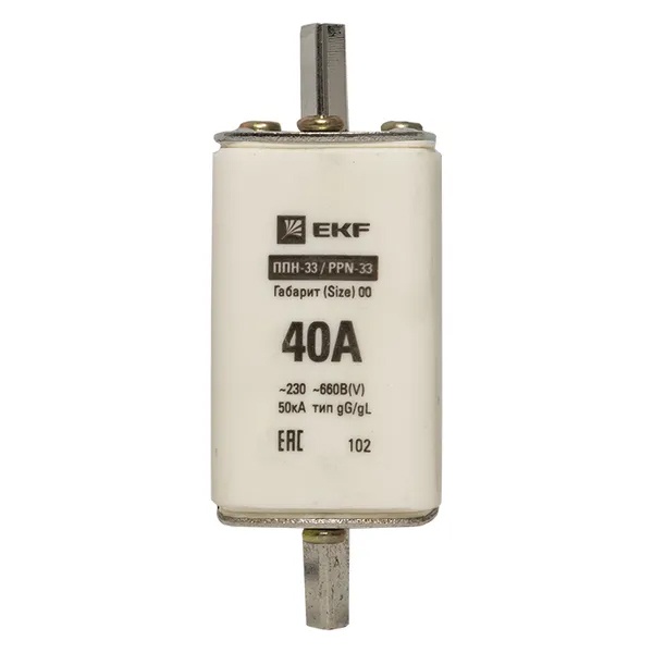 Плавкий предохранитель ножевого типа ППН-33, номинальный ток 40А, габарит 00 fus-33/160/40