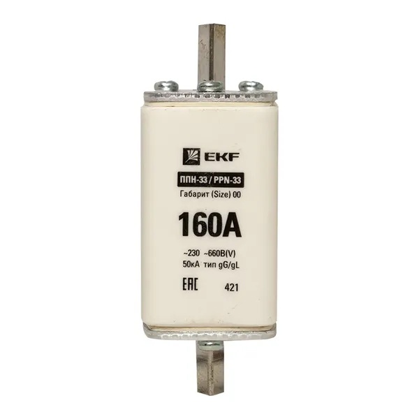 Плавкий предохранитель ножевого типа ППН-33, номинальный ток 160А, габарит 00 fus-33/160