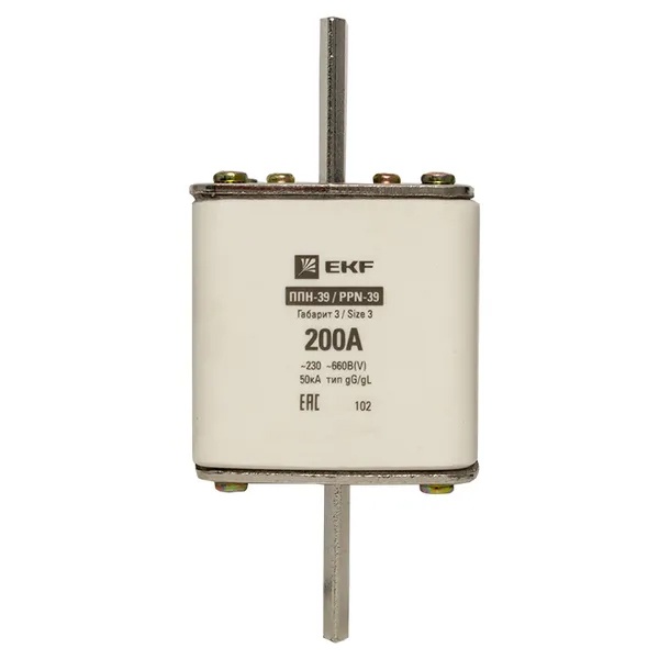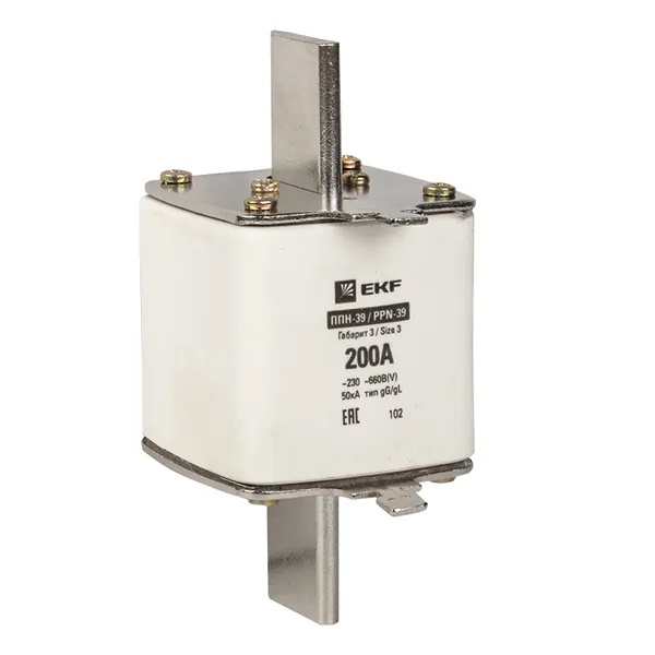Плавкий предохранитель ножевого типа ППН-39, номинальный ток 200А, габарит 3 fus-39/630/200