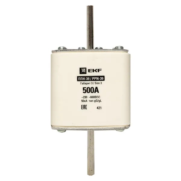 Плавкий предохранитель ножевого типа ППН-39, номинальный ток 500А, габарит 3 fus-39/630/500
