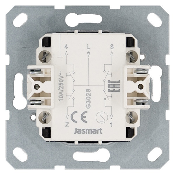 Выключатель двухклавишный для штор Jasmart G 10A, белый глянцевый