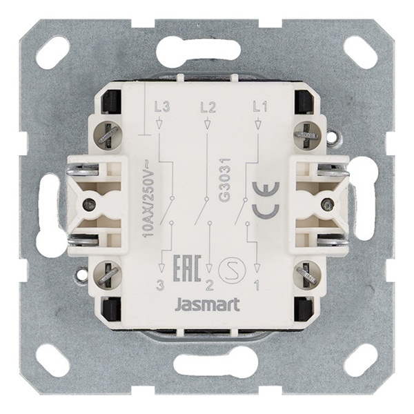 • Выключатель трехклавишный Jasmart G 10A, черный матовый