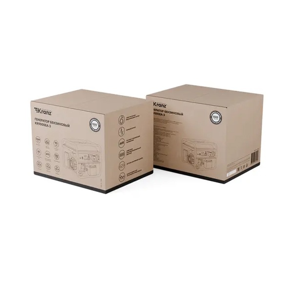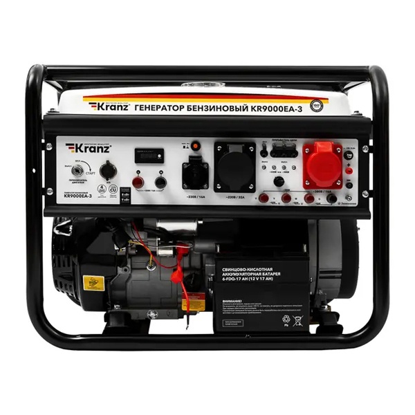 Генератор бензиновый Kranz KR9000EA-3 — мощный автономный источник электроэнергии для питания однофазных (230В) и трехфазных (380В) потребителей. Модель рассчитана на задачи, где важны высокий запас мощности, удобный запуск с электростартера и возможность подключения автоматики (ATS) через штатный коннектор. Вместительный бак 25 л обеспечивает продолжительную работу без частых дозаправок, а степень защиты IP23 подходит для эксплуатации на открытых площадках при соблюдении базовых требований по защите от прямого сильного дождя.