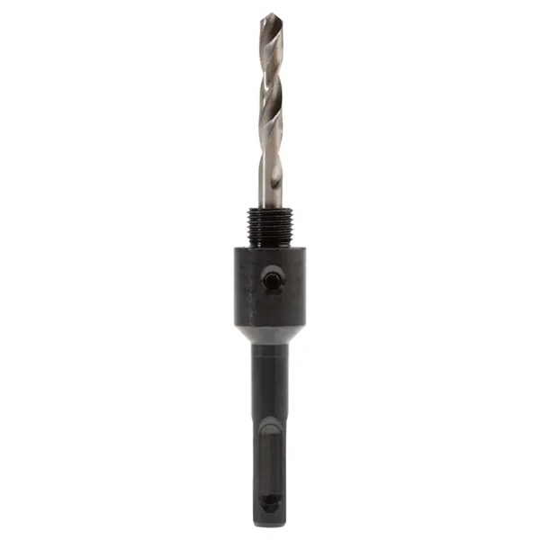 Держатель совместим с биметаллическими коронками диаметром от 14 до 30 мм, что делает его универсальным решением для сверления отверстий в металле, пластике, древесине, гипсокартоне и других материалах. Конструкция держателя предусматривает использование центрирующего сверла, которое облегчает начало сверления, повышает точность и снижает риск смещения коронки.