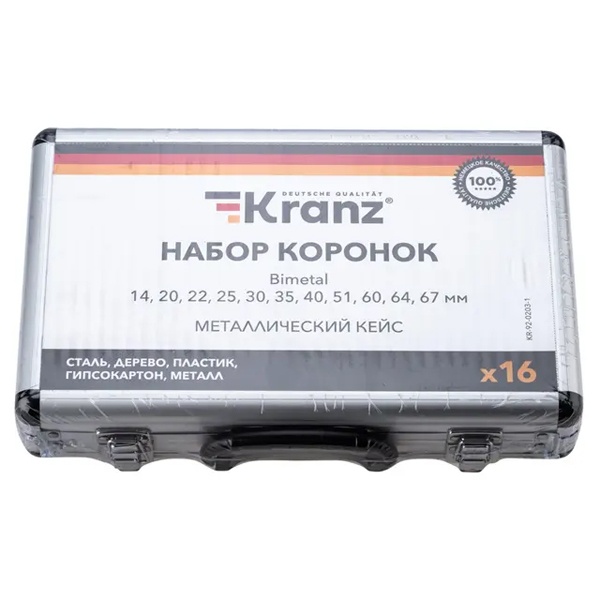 • Набор коронок Kranz Bimetal (14, 20, 22, 25, 30, 35, 40, 51, 60, 64, 67) 16 предметов в кейсе